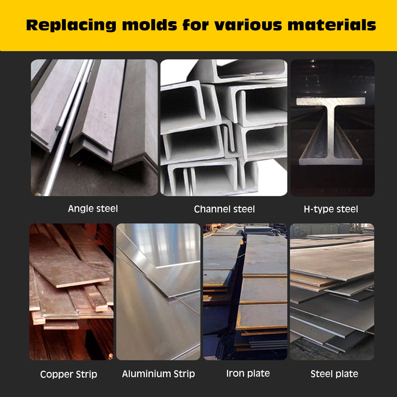 · The punching die is made of high carbon tungsten alloy steel and is suitable for punching low carbon steel, iron soft plates, copper rows, aluminum rows and other metals.