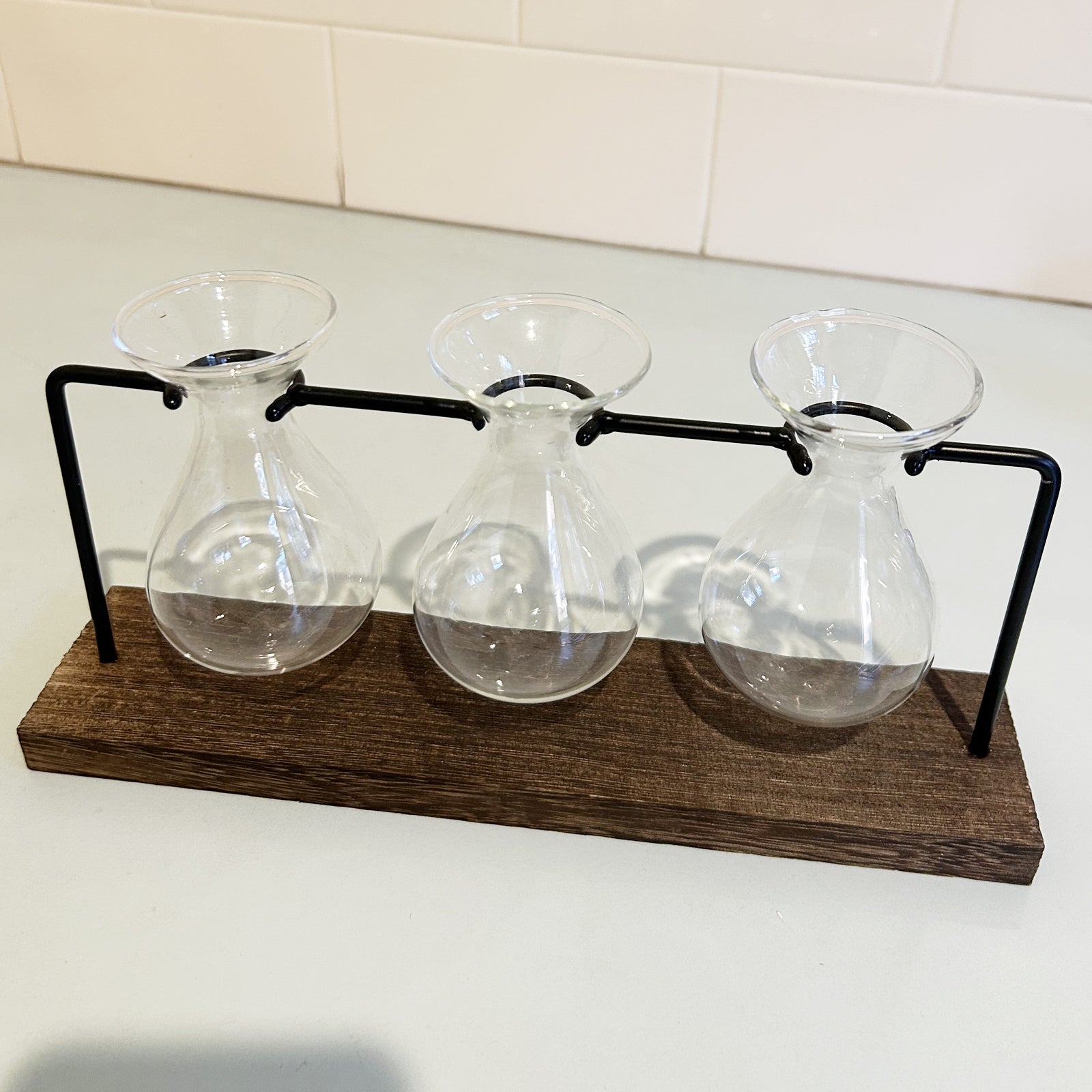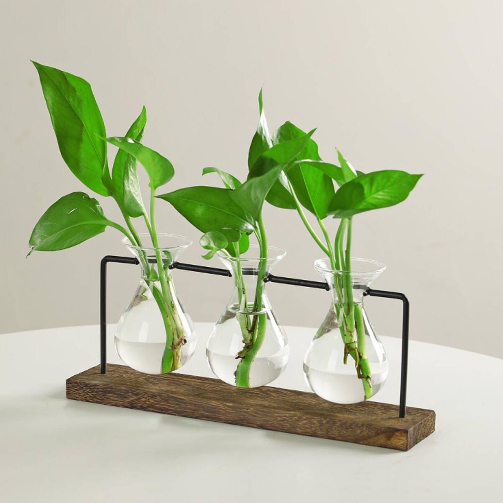 Hydroponic Glass Vase Planter Terrarium Wooden Stand F803