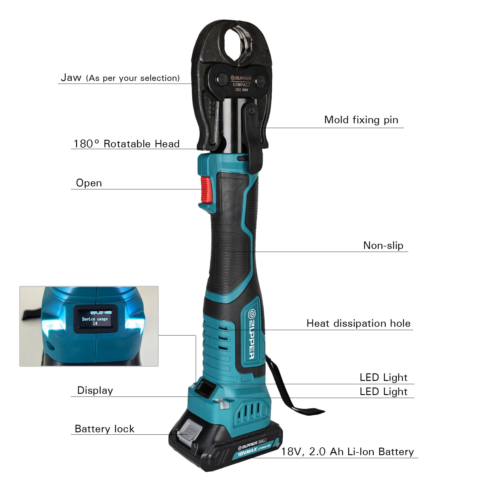 ZUPPER Plumbing Press Tools MP-2430 Battery Powered Mechanical Crimping Tool Bpress Viega Auspress