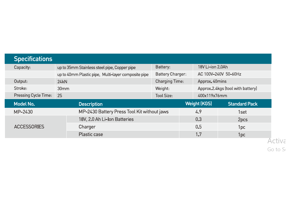 The MP-2430 is the newest addition of ZUPPER press tool with mechanical system, it is faster and efficient way to join metal pipe and plastic pipe.