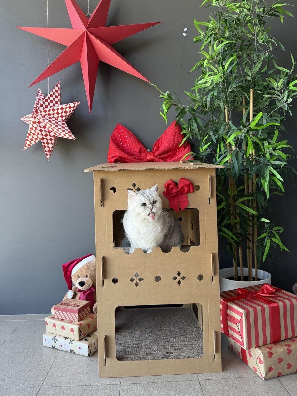 Crafted from non-toxic recycled cardboard, this is a great eco-friendly alternative to other kitty house construction.