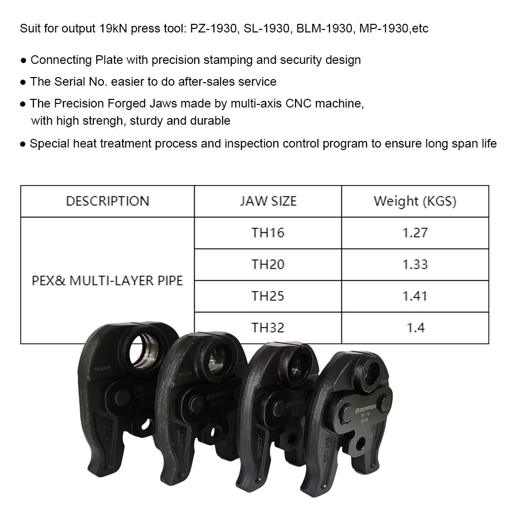 Zupper Jaw Plumbing Press Tool TH Jaws Pex Pipe for MP1930 PZ1930 SL1930 Duopex