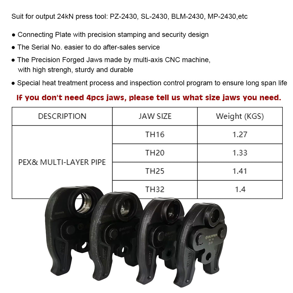 Zupper Jaw Plumbing Press Tool TH Jaws Pex Pipe for MP-2430 PZ-2430 SL-2430 Duopex