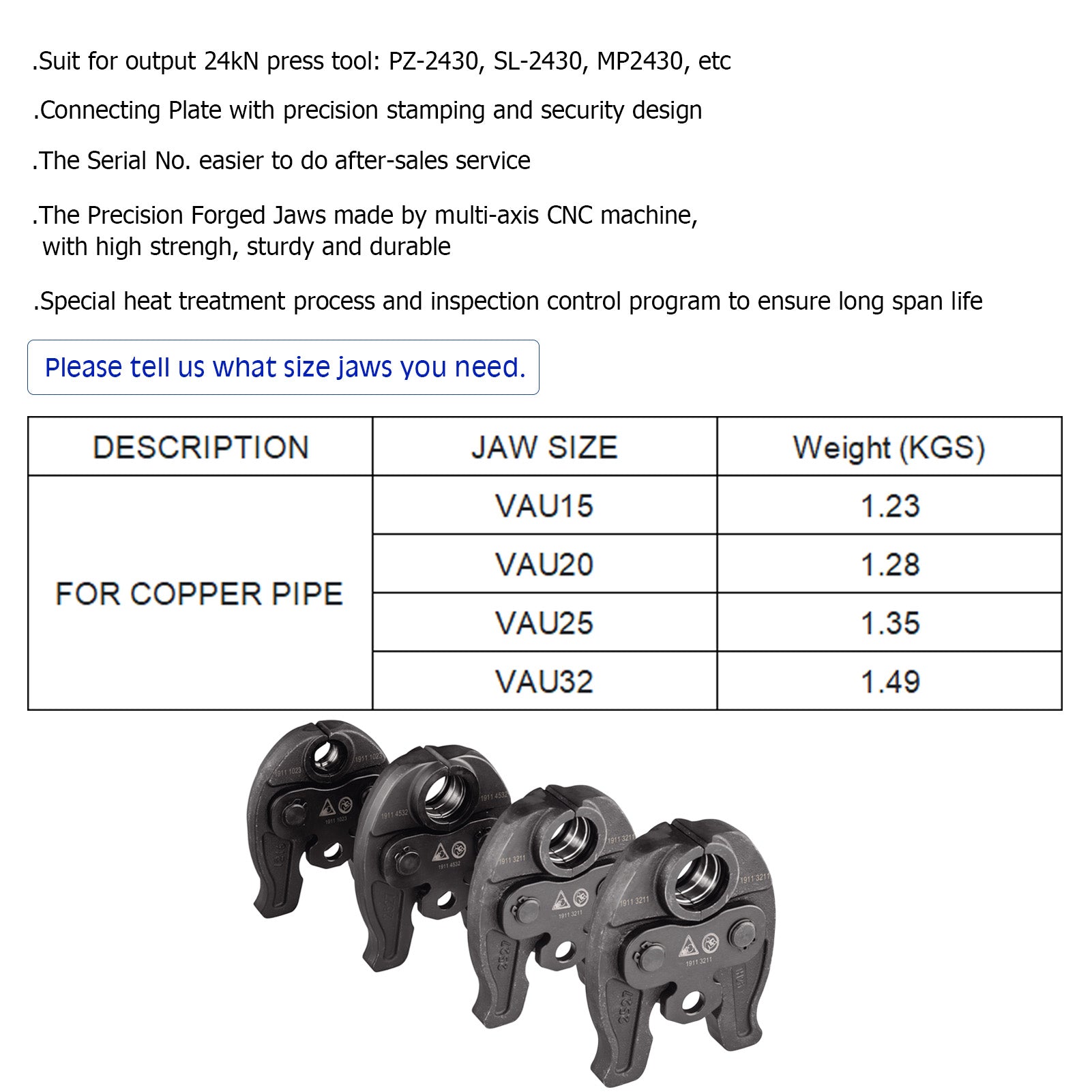 ZUPPER VAU Jaws Die Mould for Copper Pipe Plumbing Press Tool 24KN